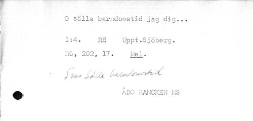 //// . //// .V V- *'¦. //// O sälla barndomstid jag dig... //// !1:4. //// RE Uppt.Sjöberg. R6, 202, 17. Mel. //// ^ ÅBO RANCKEN MS ////