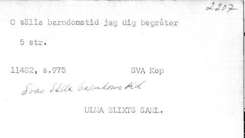 //// 0 sälla barndomstid jag dig begråter 5 str. //// 11482, s.975 SVA Kop //// JU* ^^ //// ULI.1A BLIXTS SAX. ////