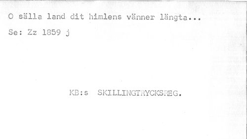 //// O sälla land dit himlens vänner längta... Se: Zz 1859 j //// KB:s SKlLLINGTRYCKSRE G. ////