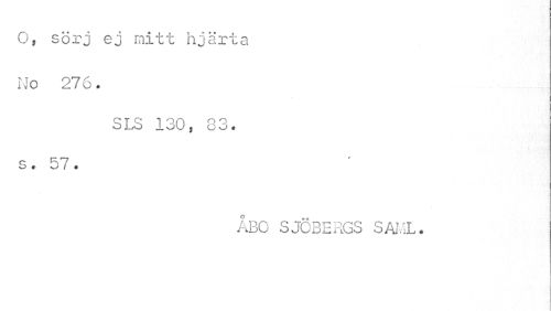 //// O, sörj ej mitt hjärta No 276. //// SLS 130, OOi | //// q R7 //// Or I 0 //// ÅBO SJÖBERGS SAML. ////