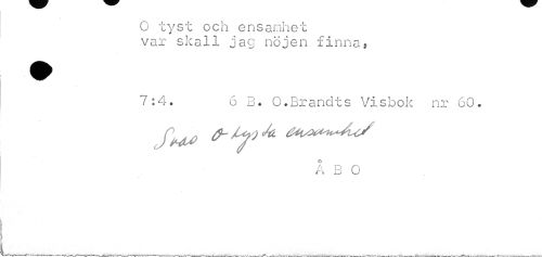 //// O tyst och ensamhet //// var skall jag nöjen finna, //// 7:4. 6 B. O.Brandts Visbok nr 60. //// o //// A B O ////