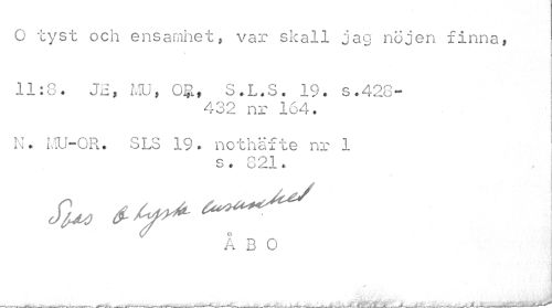 //// O tyst och ensamhet, var skall jag nöjen finna, //// v //// 11:8. JE, MU, 0£, S.L.S. 19. s.428- //// 432 nr 164. //// N. IvlJ-OR. SLS 19. nothäfte nr 1 //// s . 8 21« , I //// ÅBO //// --- jM,---... Jk---•¦---—---—---fk>---Xr-^.r—jC--*___---ULÅ---— —---""- ////