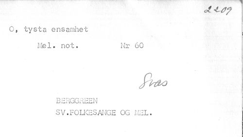//// c£<L0f //// O, tysta ensamhet //// I //// Mel. not. Nr 60 //// phU) //// BERGGREEN //// SV.FOLKESANGE OG MEL. ////