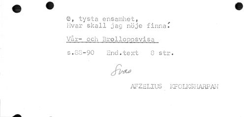 //// tysta ensamhet, Hvar skall jag nöje finna* //// Var- och Brolloppsvlsa //// s.88-90 End.text 8 str. //// i //// Jim* //// AFZELIUS KFOLKSHARPAH ////