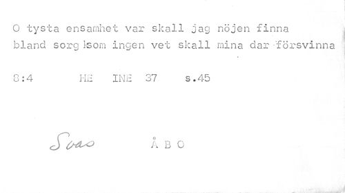 //// O tysta ensamhet var skall jag nöjen finna bland sorg ksom ingen vet skall mina dar försvinna //// 0:4 HE INE 37 s.45 //// S^Crtt^ k B O ////