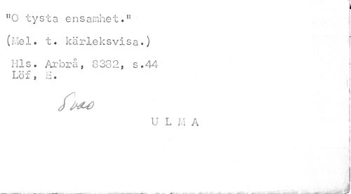 //// n0 tysta ensamhet." (I-le 1. t. kärleksvisa O //// Mls. Arbrå, 8382, s.44 I //// OX ? iz. | //// /mj //// U L M A . .. .. - - ___ . . ////