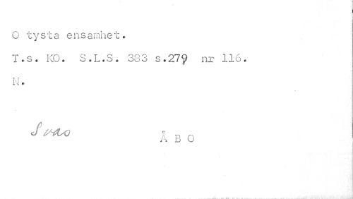 //// O tysta ensamhet. //// T.s. KO. S.L.S. 383 s.27? nr 116. N. //// c/ % n r, //// A B O //// ¦ ////