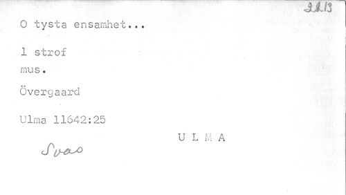 //// oA^crv** v# //// 0 tysta ensamhet... //// 1 strof mu s. //// Cvergaard Ulma 11642:25 //// U L M A ////
