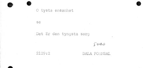 //// O tysta ensamhet se //// Det är den tyngsta sorg //// v //// fv&o //// 2129:2 DALA FORNSAL ////