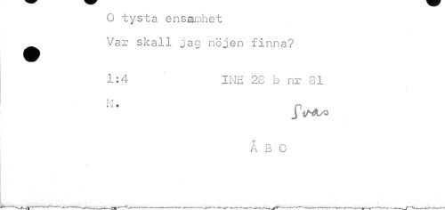 //// O tysta ensamhet //// Var skall jag nöjen finna? //// 1:4 INE 28 b nr 81 //// N ? r\ //// ÅBO ////