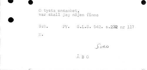 //// O tysta ensamhet, //// var skall jag nöjen finna //// 9:8. PY. S.L.S. 542. s.232 nr 117. //// N. //// jfu^G //// ÅBO //// y //// . v-— ////