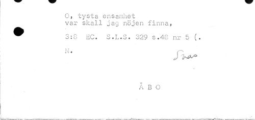 //// Or tysta ensamhet //// var skall jag nöjen finna, //// ^ 3:8 HC* S.L.S. 329 s.48 nr 5 (. //// N« //// J //// » //// Å B O ////