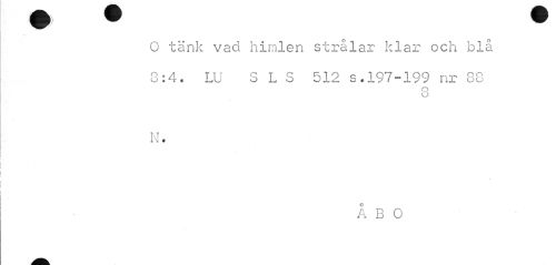 //// O tänk vad himlen strålar klar och blå 8:4. LU S L S 512 s.197-199 nr 88 //// O //// O //// N. //// ÅBO ////