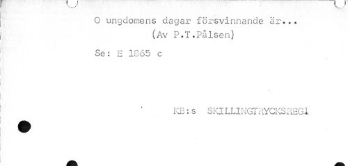 //// O ungdomens dagar försvinnande är... //// (Av P.T.Pålsen) //// Se: E 1S65 c //// « //// % //// KB: s S Kl LLINGT RYCKS REGI ////