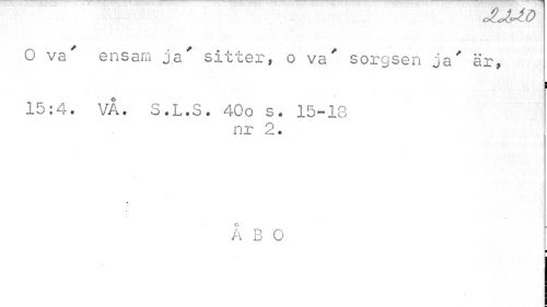 //// O va' ensam ja' sitter, o va' sorgsen ja' är, //// i //// 15:4. VA. S.L.S. 40o s. 15-13 //// nr 2. //// A //// ÅBO //// I ////