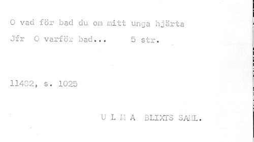 //// i //// O vad för bad du om mitt unga hjärta ¦ //// Jfr O varför bad... 5 str. //// i //// i //// 11402, s. 1025 //// ; j //// U L M A BLIXTS SAML. ////