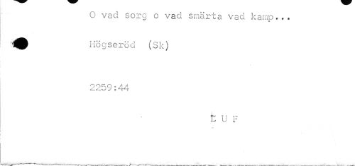 //// O vad sorg o vad smärta vad kamp... Högseröd (Sk) //// / //// iv>e //// t U F ////