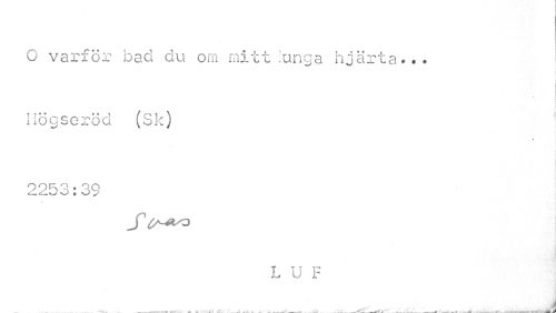 //// O varför bad du om mitt lunga hjärta*.. Högseröd (Sk) //// 2253:39 //// \ //// L U F //// .i»., ___—-rr . - t jr. a* <V -t . . —. • ¦ - * f-,. • . j»iA>. . ___^»».^jÉå» 4fl ////