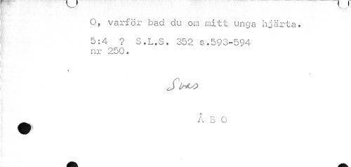 //// •--N,___ //// O, varför bad du om mitt unga hjärta. //// 5:4 ? S.L.S. 352 s.593-594 nr 250. //// ^ //// / //// • ÅBO //// \ //// 1 //// I ////