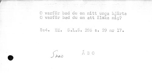 //// O varför bad du om mitt unga hjärta O varför bad du om att älska miq? //// v/ //// \ •-• • //// v _ //// 5:4. EE. S.L.S. 286 s. 29 nr 17. //// O //// C A B 0 //// ^ J håbO ////
