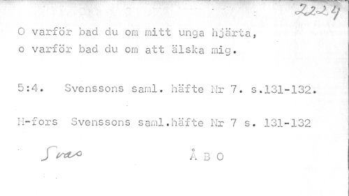 //// : c^o^ y //// 0 varför bad du om mitt unga hjärta, o varför bad du cm att älska mig. //// 5:4. Svenssons saml. häfte Nr 7. s.131-132. H-fors Svenssons saml.häfte Nr 7 s. 131-132 ' fr** Å B 0 ////