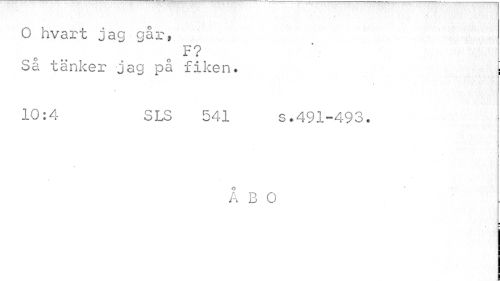 //// O hvart jag går, //// o F? //// Så tänker jag på fiken. //// 10:4 SLS 541 s.491-493. //// ÅBO //// ¦ ////