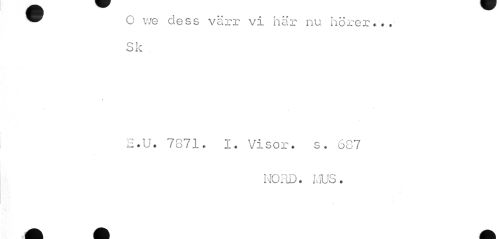 //// ™ O v/e dess värr vi här nu hörer... //// Q }r O IV //// 2.U. 7871. I. Visor. s. 607 //// NORD. MUS. //// ci ////
