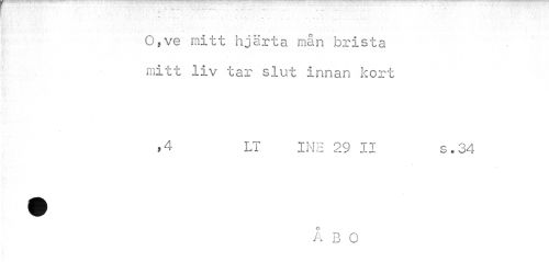 //// « //// O,ve mitt hjärta mån brista mitt liv tar slut innan kort //// »4 LT INE 29 II s.34 //// A B 0 ////