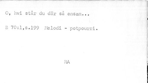 //// O, hvi står du där så ensam... //// i //// B 70:1,s.199 Melodi - potpourri. //// IlA //// ¦ ////