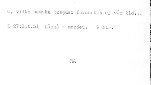 //// I //// O, vilka hemska bragder fördunkla ej vår tid,.. //// B 27:1,s.51 Långå - mordet. 9 str. i //// ¦ //// ¦ //// I //// I I //// l //// RA ////