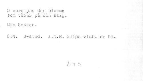 //// O vore jag den blomma som växer på din stig. //// Min önskan. //// «* t //// * //// 8:4. J-stad. I.N.E. Slips visb. nr 55. //// * //// •j rj • //// : vi Iffl //// c //// A B O ////