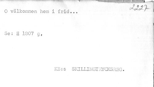 //// JJJ X //// O välkommen hem i frid... " ' //// v //// i //// Se: E 1807 g» //// i //// KB:s SKILLINGTRYCKSREG. ////