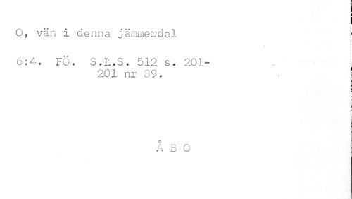 //// O, vän i denna jämmerdal //// 6:4. FÖ. S.L.S. 512 s. 201- //// 201 nr 89. //// l //// i //// i c //// ÅBO ////