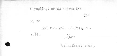 //// i //// ¦ //// C yngling, om clu hjärta har //// (R) //// No 50 //// SLS 126, 35. R6, 203, 50. s . 14. r* //// JMs* //// ^ ÅBO SJÖBERGS SAL IL. ////