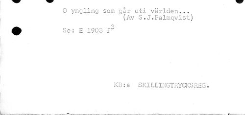//// O yngling som går uti världen... //// (Av S.J.Palmqvist) //// ^ se: e 1903 f3 //// kb:s skillingtrycksreg. ////