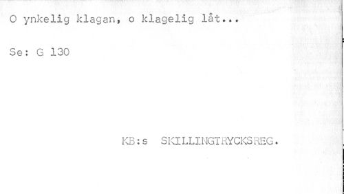 //// O ynkelig klagan, o klagelig låt..» //// ¦ ¦ //// Se: G 130 //// KB:s SKlLLINGTRYCKS REG. ////
