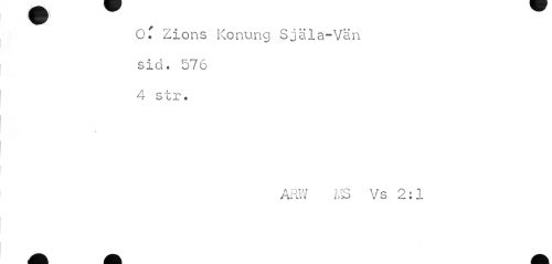 //// O t Zions Konung Själa-Van sid. 576 4 str. //// * //// ARW MS VG 2:1 ////