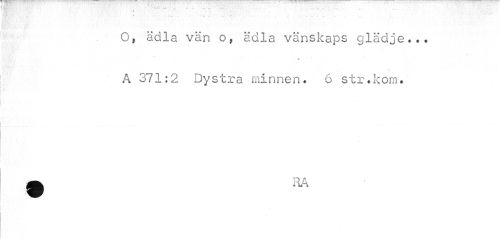 //// ... . //// O, ädla vän o, ädla vänskaps glädje... A 371:2 Dystra minnen. 6 str.kom. //// L //// • RA ////