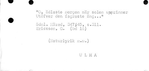 //// nQ, ädlaste morgon när solen upprinner Utöfver den fagraste äng..«H //// Sdml. Härad, 347j45, s.311• Ericsson, G. (bd 16) //// (Mat ur 1 y r i k rn. m<) //// U L M A ////