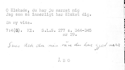 //// ¦ //// O älskade, du har ju narrat mig Jag som så innerligt har älskat dig. //// En ny visa. j //// 7:4(3). Kl. S.L.S. 277 s. 344-345 //// nr 29. [ //// i ¦ //// (Zcsk. Ctci. ^^ AJ^L UJiASl ¦ //// / //// ÅBO ////