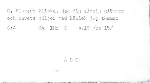 //// O, älskade flicka, jag dig aldrig glömmer och havets böljor med kärlek jag tömmer //// 6:4 SA IHr 6 s.19 /nr 15/ //// Å B O //// f r* //// ___—___, ---r****-*''-^»--.--—---——---^ ////