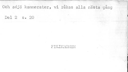 //// Och adjö kammerater, vi råkas alla nästa gång Del 2 s. 20 ; //// . .V,-.V. //// .' 'm it' //// FILIKROMEN //// ¦ ////
