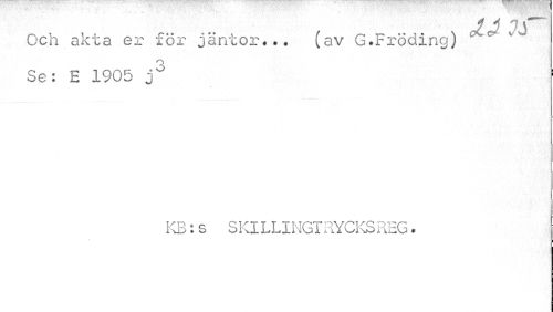 //// Och akta er för jäntor... (av G.Fröding) c ' J Sc: E 19ö5 : //// KB:s SldLLINGTRYCKSRHG ? ////