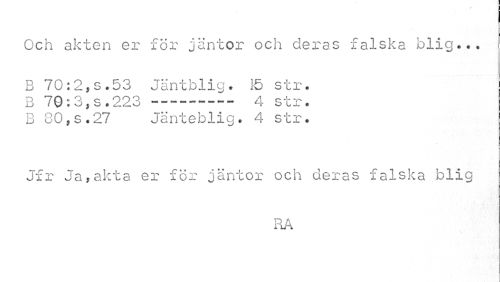//// Och akten er för jäntor och deras falska blig... //// B 70:2,s.53 Jäntblig. 15 str. //// B 70: 3, s .223 ... 4 str. //// B 80,s.27 Jänteblig. 4 str. //// Jfr Ja,akta er för jäntor och deras falska blig //// RA //// \ ////