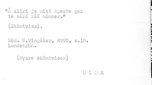 //// il //// G //// ,fA allri ja mitt hjerte ger te nårä råa bönner.11 //// (Skämtvisa) . I //// Söd. V.Vingåker, 4995, s . 18 . j //// Lundström. I //// ¦ //// (Nyare skämtvisor) ; //// U L l.i A //// i ////