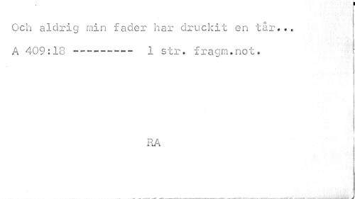 //// Och aldrig min fader har druckit en tår... A 409:18 --- 1 str. fraqm.not. //// w //// / //// RA //// i ////