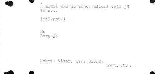 //// ^^ A aldri skö jo säje, alldri vall jö //// *» « //// s a j o • * • (mel.not.) //// i //// Hs //// Bergsjö //// Mskpt. Visor, E.U. 32692. //// NO:ID. MUS. ////