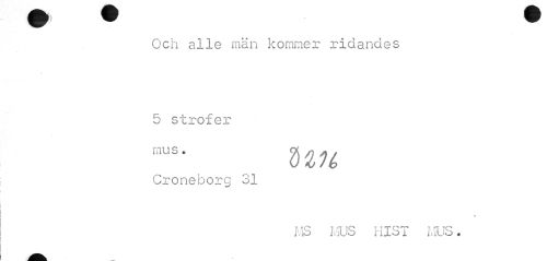 //// Och alle män kommer ridandes //// % //// 5 strofer //// Hu //// Croneborg 31 //// MS MUS MIST MUS. ////