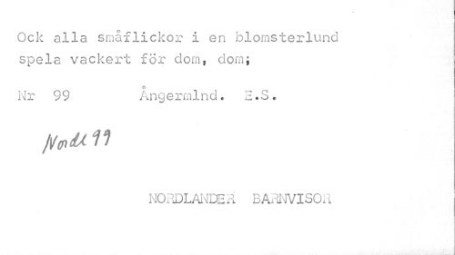 //// Ock alla småflickor i en blomsterlund spela vackert för dom, dom; //// G //// Nr 99 Angermlnd. E.S* //// /I //// NORDLANDER BARNVISOR ////