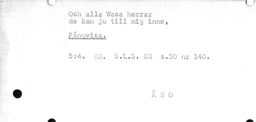 //// M //// Och alla Wasa herrar de kom ju till mig innef //// Fångvisa« //// mm ¦ ' ; //// 5:4. RE. S.L.S. 63 s.50 nr 140. //// Bwf&w. //// ^P A B O ////